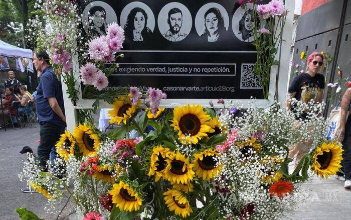 CIUDAD DE MÉXICO.- Para honrar su memoria y seguir con la exigencia de verdad y justicia, familiares y amigos del fotoperiodista Rubén Espinosa, la modelo Mile Martín, la trabajadora doméstica Alejandra Negrete, la maquillista Yesenia Quiroz y la activista Nadia Vera, develaron un nuevo memorial frente al edificio de la colonia Narvarte, alcaldía Benito Juárez, donde hace casi nueve años ellos fueron asesinados.