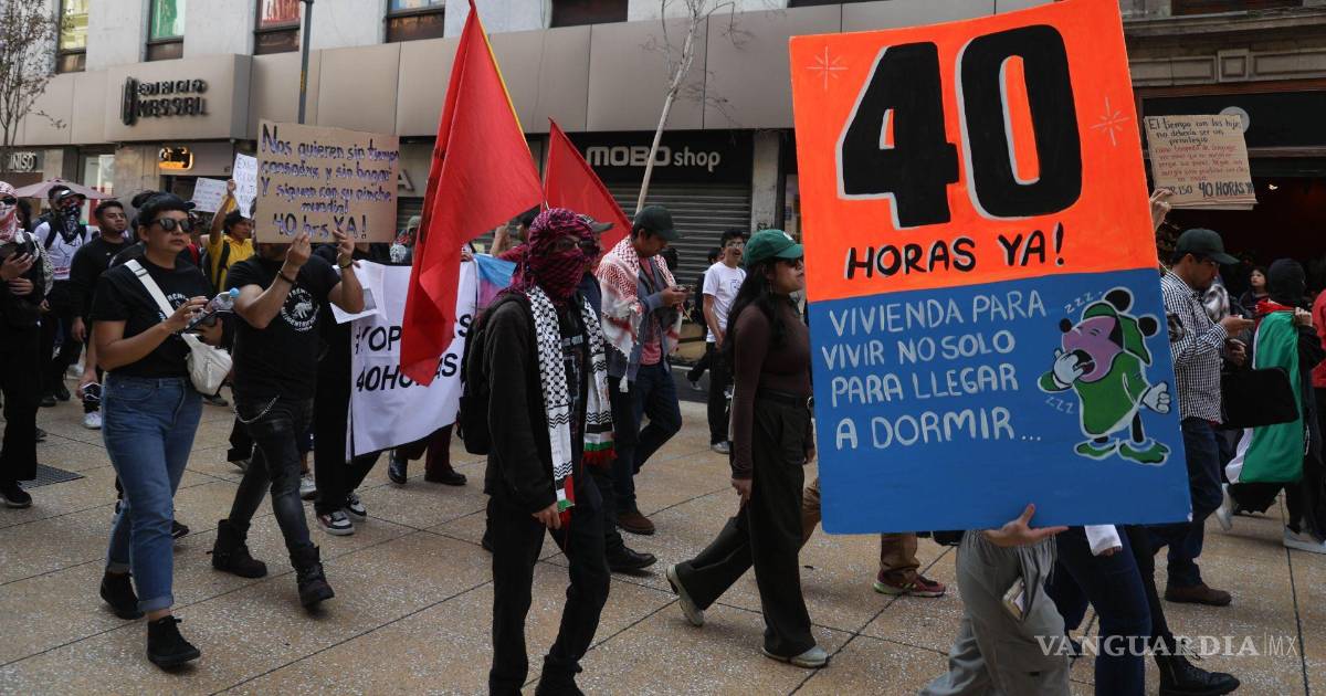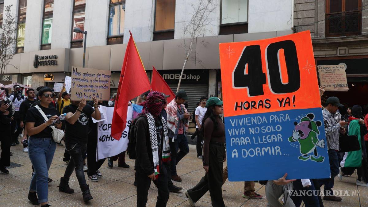 CDMX.- Colectivos en favor de la reducción de la jornada laboral a 40 horas marcharon este sábado desde el Zócalo capitalino hasta el Senado de la República para exigir que la reforma sea aprobada sin esquemas de gradualidad. Los manifestantes reprocharon lo que consideran una falta de voluntad política por parte de Morena y del Gobierno federal para impulsar la iniciativa.