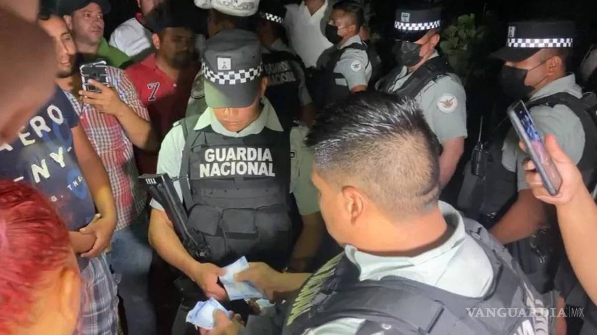 En las imágenes del video se observa que los elementos de la Guardia Nacional cuentan dinero en billetes y después lo entregan a una persona, mientras se escuchan gritos de “¡espósalo!, ¡espósalo!”, en referencia al elemento que acusaban.