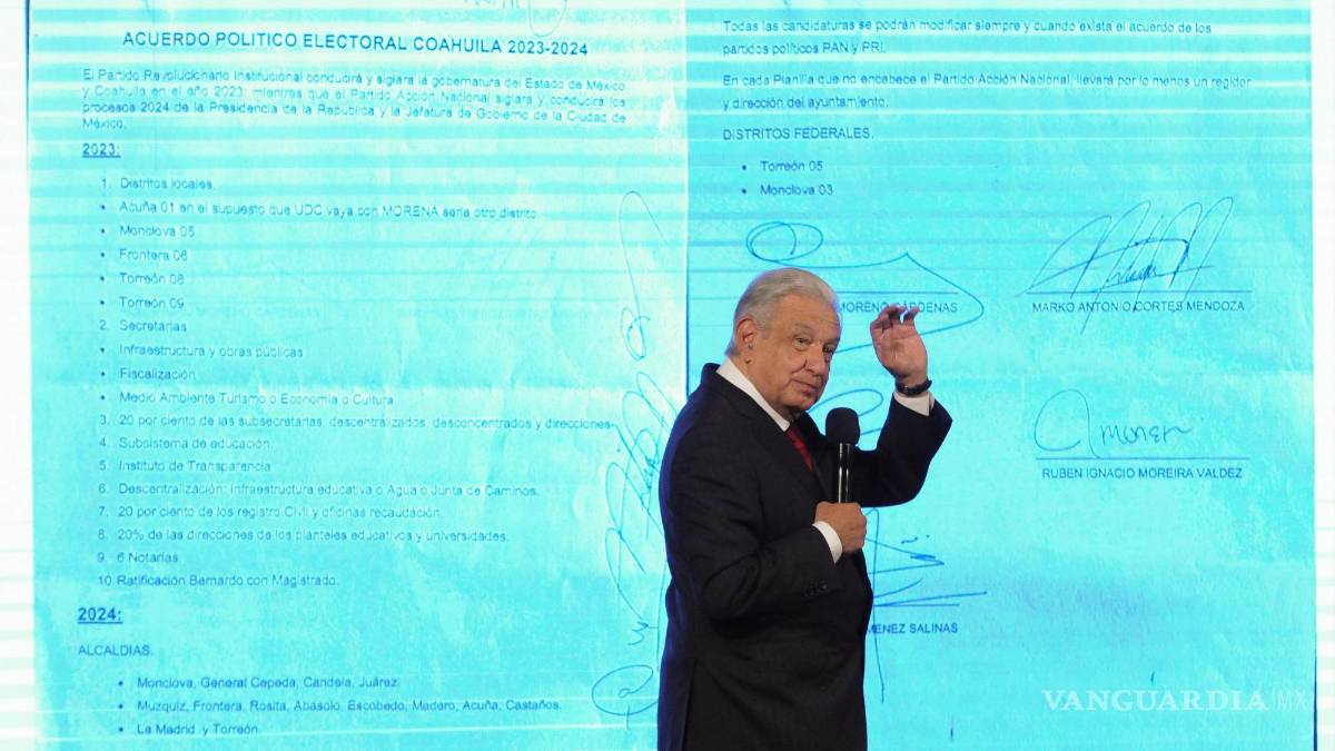 “¿Si conocieron el acuerdo que dio a conocer el presidente del PAN sobre la elección anterior en Coahuila? Les puedo garantizar que el 90 por ciento no se enteró porque no lo sacan los medios de información, pero es una prueba documental importantísima, es algo histórico que tenemos que conocer todos para que no se repitan estas cosas”, expresó desde Palacio Nacional.
