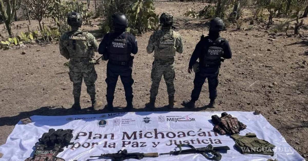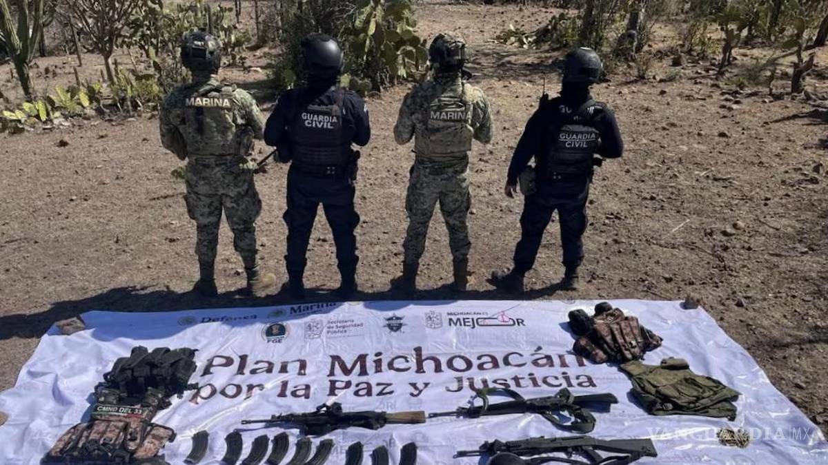 MORELIA, MICH.- En el marco del “Plan Michoacán por la Paz y la Justicia”, personal de la Secretaría de Marina (Semar) aseguró droga, vehículos y armamento en el municipio de Arteaga, en una acción conjunta con la Guardia Civil.