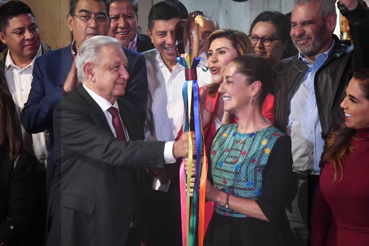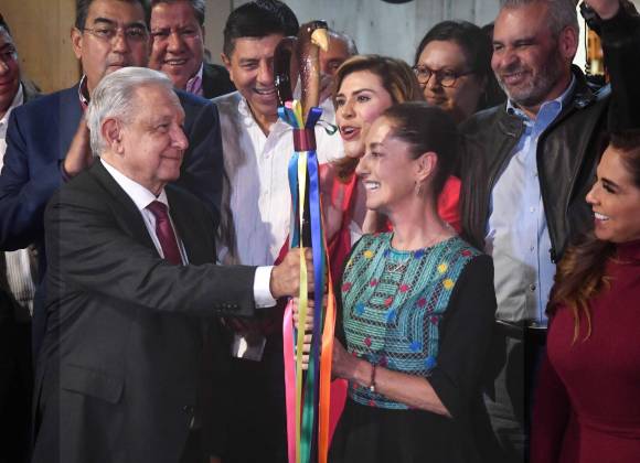 Tras ser ganadora de las encuestas para convertirse en la Coordinadora de Defensa de la Cuarta Transformación, la ex Jefa de Gobierno de la Ciudad de México, Claudia Sheinbaum recibió de las manos del presidente de México, Andrés Manuel López Obrador, el bastón de mando que simboliza ser la encargada de continuar con la 4T.