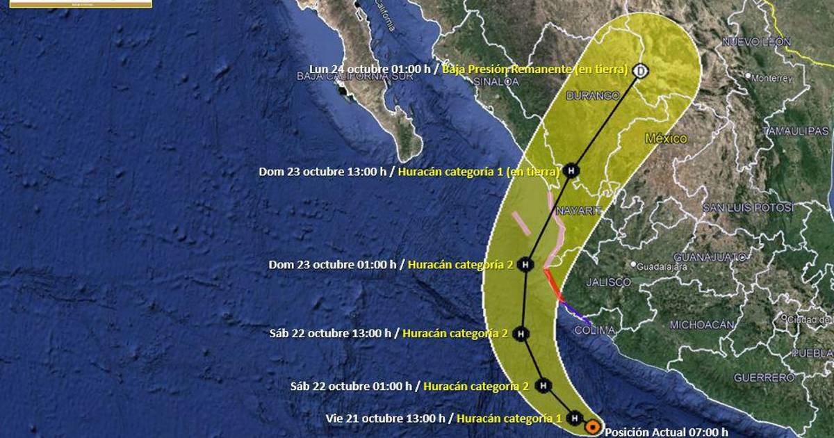 La tormenta se ubicaba este viernes por la mañana a 305 kilómetros de Manzanillo, con vientos sostenidos de 65 mph (100 km/h), de acuerdo con el Centro Nacional de Huracanes de Estados Unidos. El ciclón continúa avanzando al noreste a 7 mph (11 km/h) alcanzando la categoría 1.