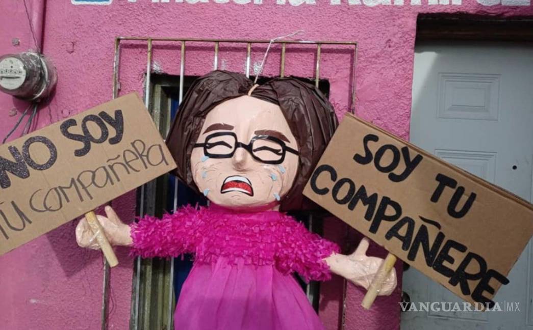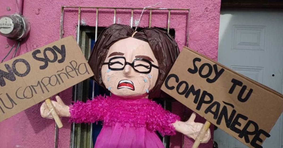 “Desgraciades” posteó primero la joven sobre la imagen de la piñata vestida en color rosa y con carteles que dicen: “No soy tu compañera, soy tu compañere”.