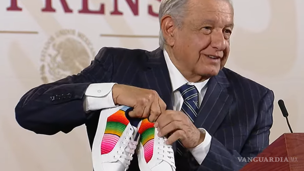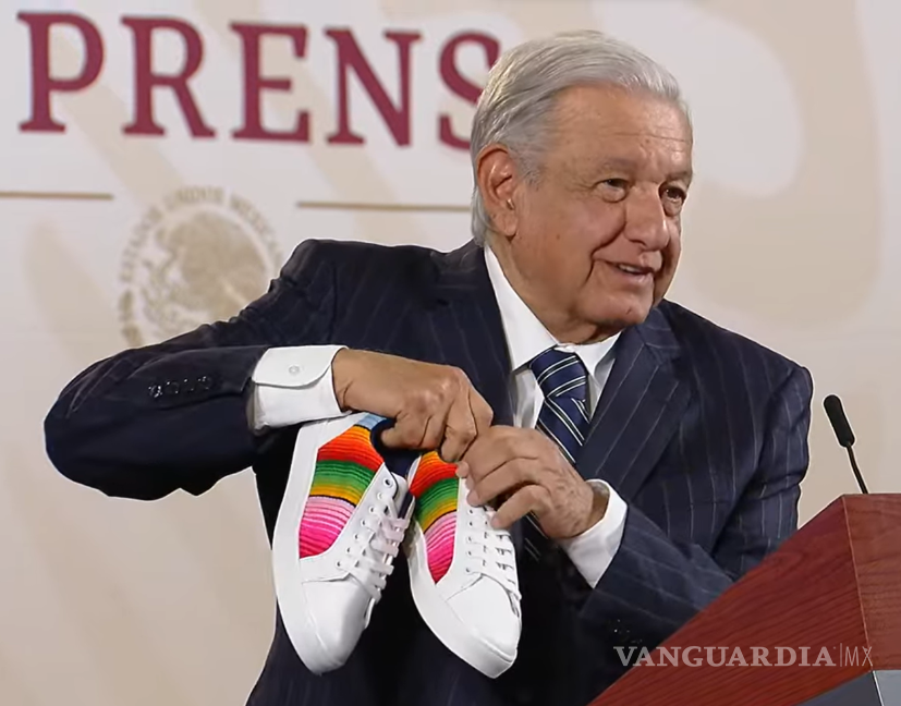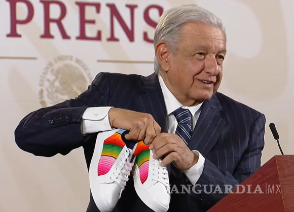 AMLO presume tenis con sarape saltillense hechos por ‘Jóvenes Construyendo el Futuro’
