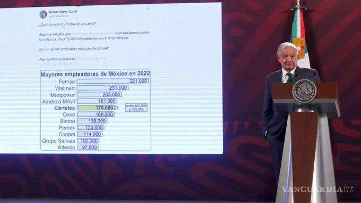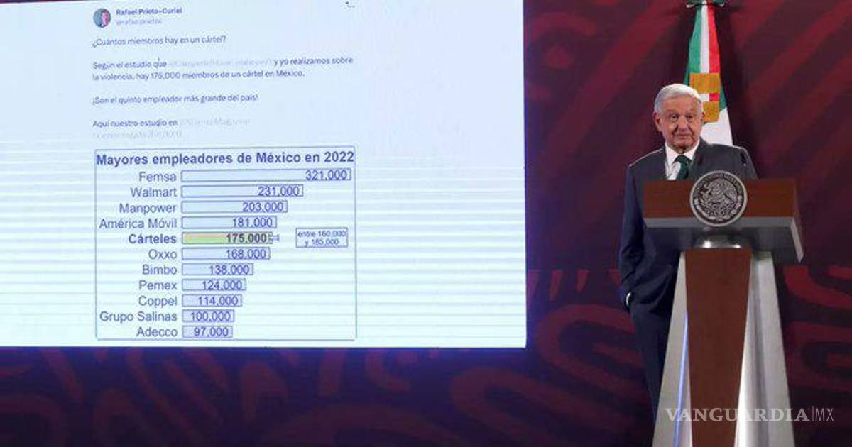 Así se refirió al estudio que sostuvo que los cárteles de droga se posicionaron en el quinto lugar como empleadores en México, después de Fomento Económico Mexicano (la empresa embotelladora más grande del sistema Coca-Cola en el mundo), Walmart, Manpower y América Móvil, y por encima de Pemex y el Grupo Salinas.