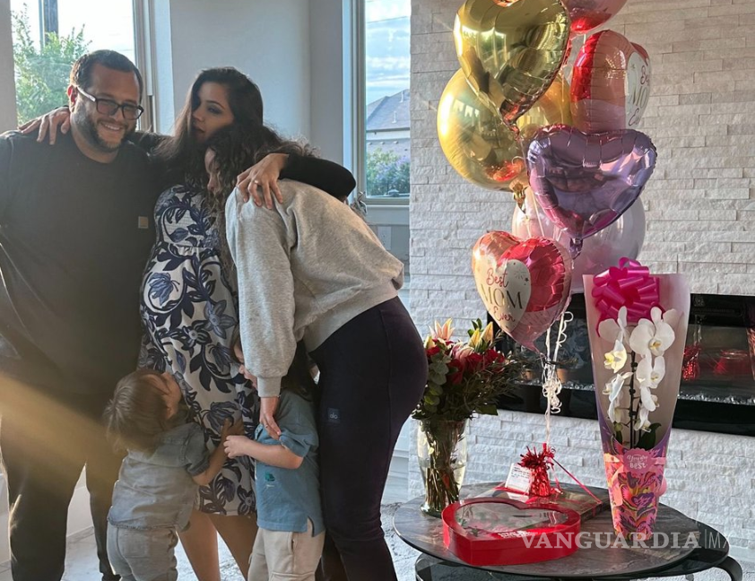 Dentro de la imagen se puede observar a la familia abrazando a la matriarca junto a un ramo de flores, chocolates y globos; sin embargo, lo que más llamó la atención fue el vientre de la empresaria, pues reveló que nuevamente está embarazada y le dará a los López un nuevo integrante.