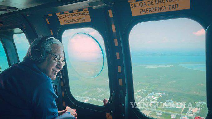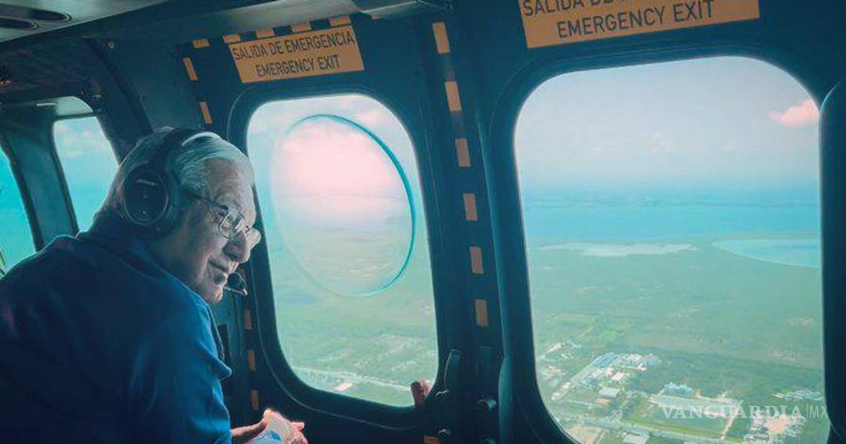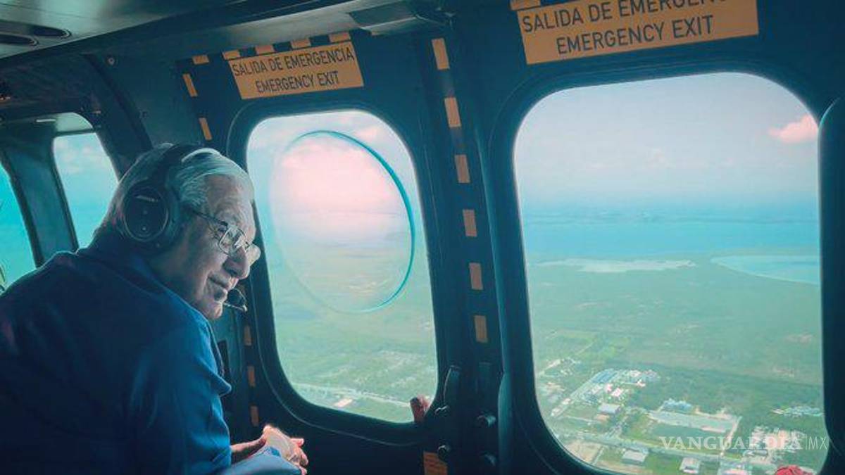AMLO sobrevuela tramo del Tren Maya entre Mérida y Cancún, ‘el pueblo quiere y apoya esta gran obra’