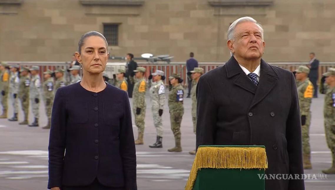 Al mismo tiempo, la banda de guerra de la Secretaría de la Defensa Nacional (Sedena) ejecutó el Toque de Silencio.