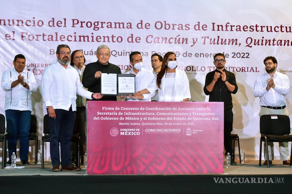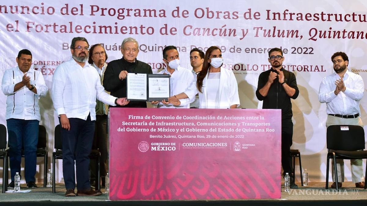 Al encabezar la firma del Convenio de Coordinación de Acciones entre la Secretaría de Infraestructura, Comunicaciones y Transportes y el gobierno del estado, recordó que pese al impulso que la federación ha dado al desarrollo de Quintana Roo en las últimas décadas, “no creo que haya sucedido una obra de 70 mil millones de pesos”, que incluye la entrega en operación del Tren Maya, la realización de cuatro obras de modernización y ampliación de su infraestructura vial, incluida la construcción de un puente vehicular de 13.5 kilómetros sobre la Laguna de Nichupté, que conectará la zona hotelera con el centro de Cancún.