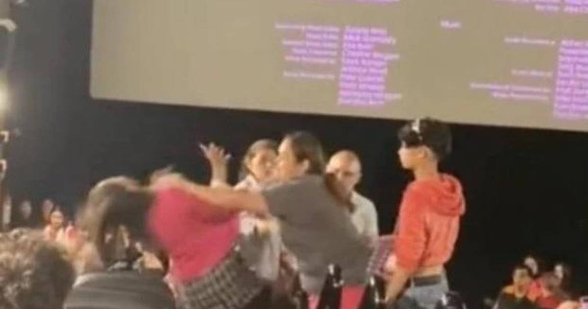 La madre respondió a la mención subiendo las escaleras y empujando a la joven, quien intentó patearla en la espalda antes de que otro espectador los separara. Los gritos continuaron hasta que las dos salieron de la sala.