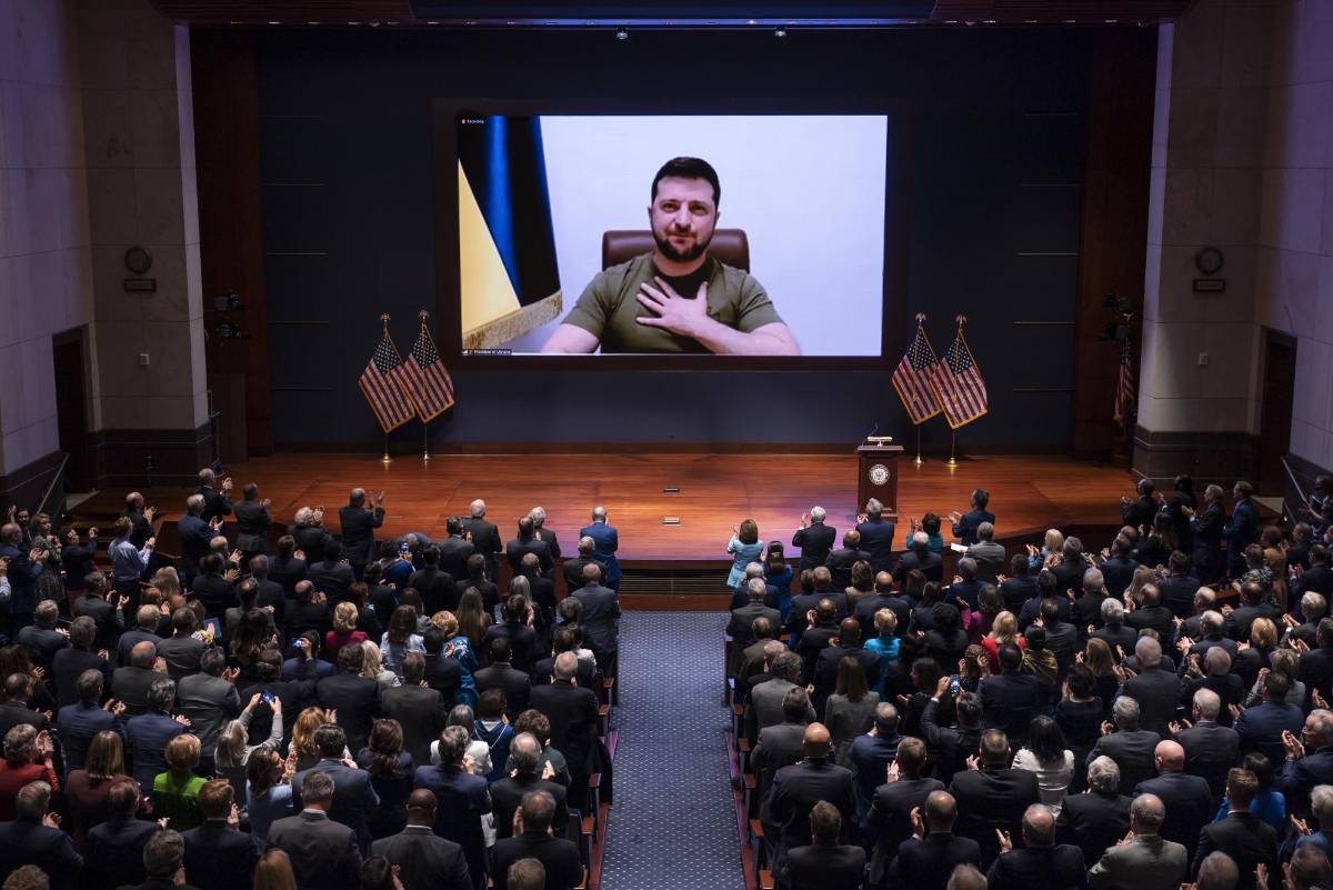 Los legisladores le dieron una ovación de pie, tanto antes como después de su discurso, que Zelenski empezó en ucraniano con la ayuda de un intérprete pero luego cambió al inglés para hacer un emotivo pedido de ayuda. “No veo que la vida tenga sentido si no podemos poner fin a esta matanza”, declaró.