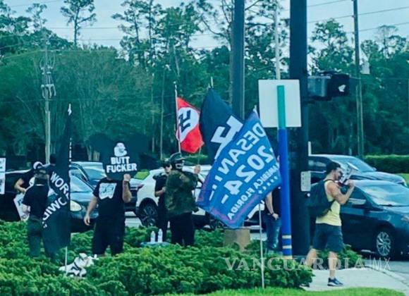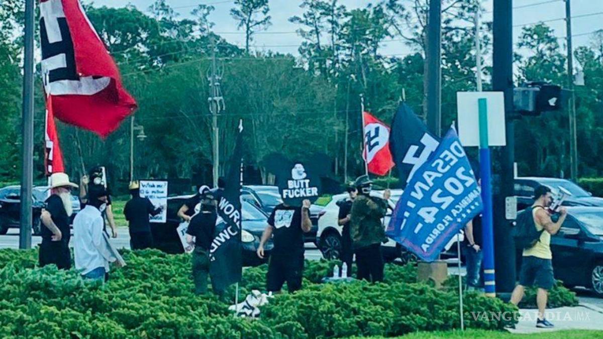 Medios internacionales recabaron que, el pasado fin de semana, militantes arribaron al lugar con carteles en apoyo a DeSantis, asimismo, portaban banderas con la cruz esvástica, emblema del partido liderado por Adolf Hitler.