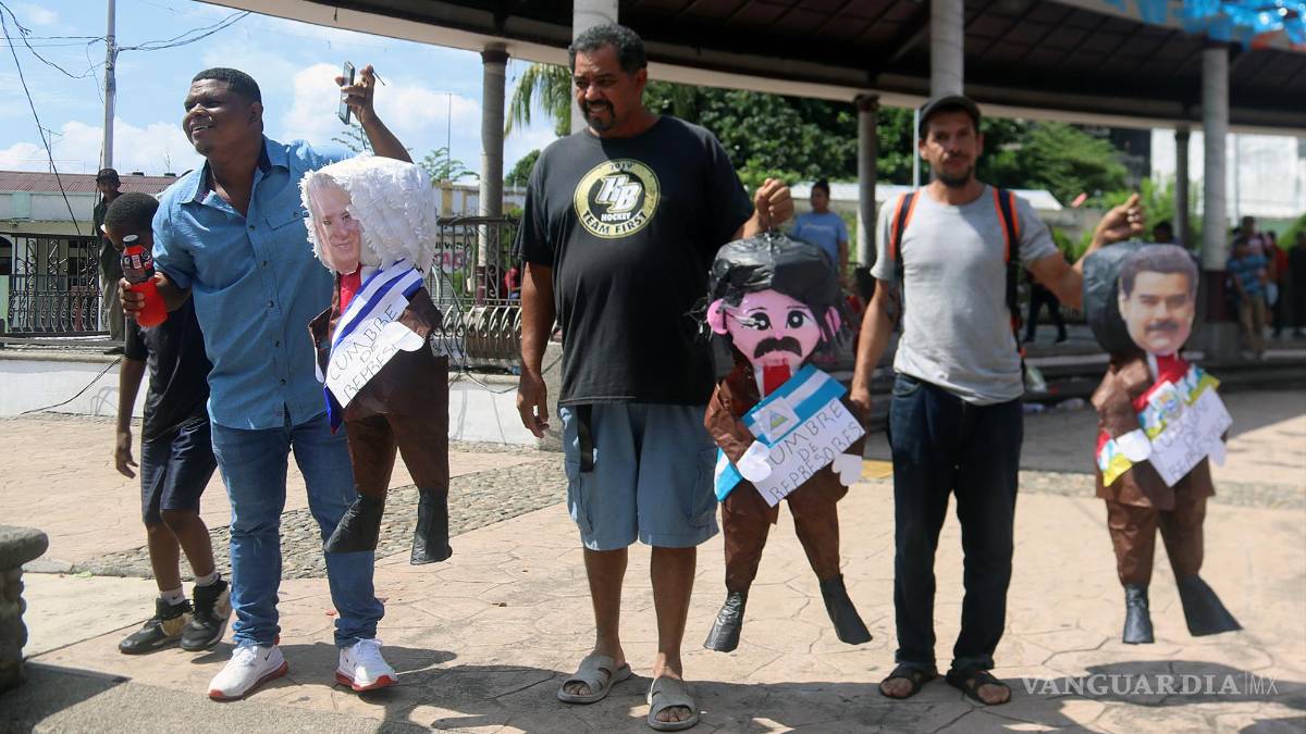 Cerca de 200 migrantes -la mayor parte de Venezuela, Centroamérica y Haití- prendieron fuego a las piñatas que tenían las caras del venezolano, Nicolás Maduro; del cubano, Miguel Díaz-Canel, y del nicaragüense, Daniel Ortega.
