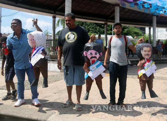 TAPACHULA, CHIS.- Migrantes de distintas nacionalidades, varados en la frontera sur, quemaron piñatas con las imágenes de los presidente de Nicaragua, Cuba y Venezuela, a modo de protesta contra la cumbre migratoria que se desarrolló este fin de semana.