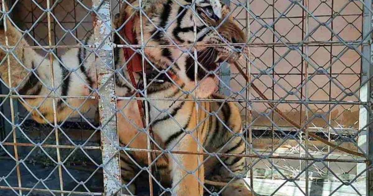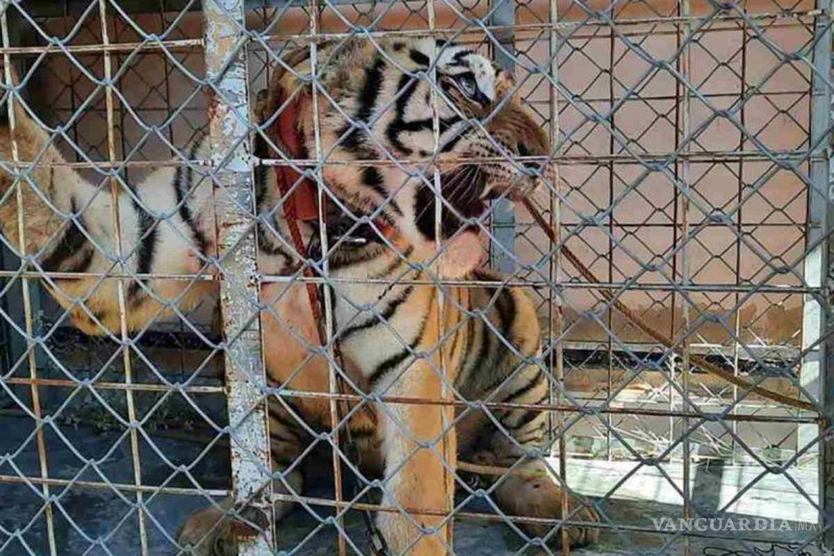 En el inmueble se localizó un tigre de Bengala hembra de 2 años, en buen estado, que estaba atada con cadenas en una de las habitaciones.