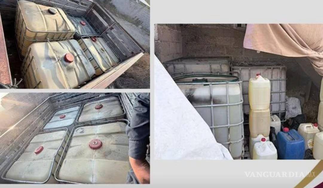 Durante la revisión fueron localizados tres vehículos estacionados a la entrada de un salón de eventos de la localidad. Al inspeccionar las unidades, se encontraron 10 bidones con capacidad de mil litros cada uno, presuntamente destinados al almacenamiento y distribución de gasolina.