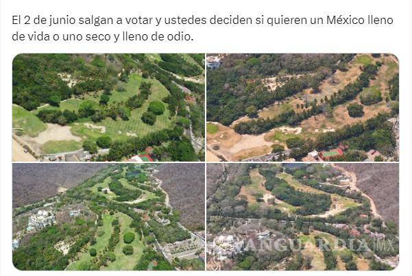 “Un día después que por venganza la GN expropiara ilegalmente el campo de golf en Huatulco pedí que le tomaran fotos, a 8 días de que el Gobierno lo tomó para ‘cuidarlo’, así se ve”, apuntó.