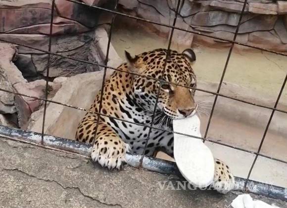 En las redes sociales se difundió un video del momento en el que uno de los jaguares del zoológico mordisquea un zapato deportivo enredado en los alambres de la jaula y luego lo lleva al interior del albergue. (Con información de AP)