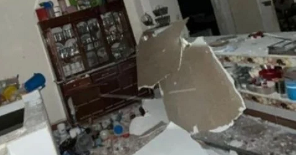 Otro explosivo cayó en una vivienda, causando destrozos en su techo y en el interior.