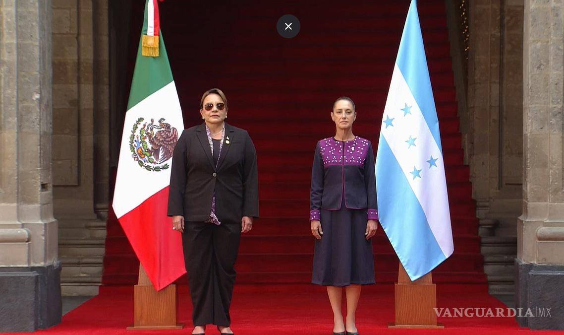 A las 12:05 horas, Sheinbaum dio la bienvenida a Castro en la Puerta de Honor, ubicada en el Zócalo capitalino. La zona permanecía resguardada con vallas debido a las manifestaciones previstas por el Día Internacional de la Eliminación de la Violencia contra las Mujeres (25N), por lo que la mandataria hondureña ingresó por la calle Corregidora.