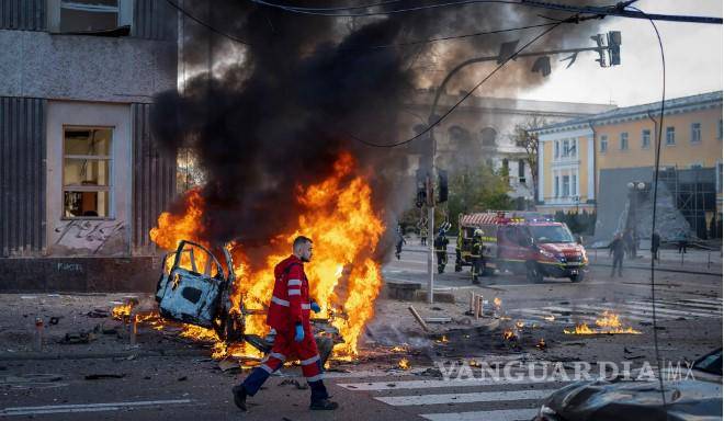 El ejército de Moscú lanzo al menos 81 misiles de curcero contra ciudades ucranianas, según el Ministerio de Defensa de Kiev, matando al menos a 10 personas, dañando muchos edificios y dejando un cráter junto a un parque infantil en la capital.