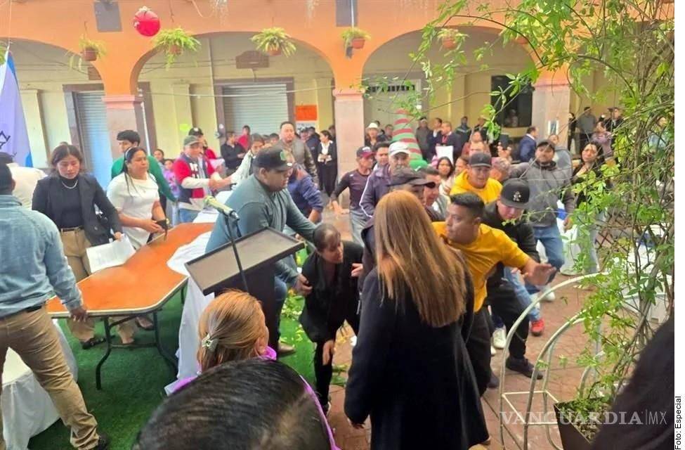 Cuando intentaron detenerlo, otros presentes se acercaron para impedirlo y, entre empujones y jalones, el perredista escapó corriendo.