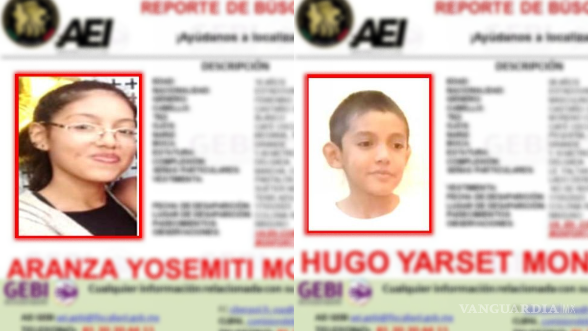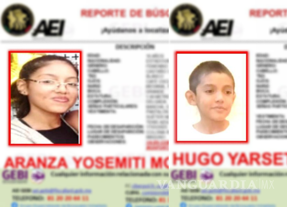 El Grupo Especializado de Búsqueda Inmediata (GEBI) emitió las fichas con el reporte de búsqueda de Hugo Yarset y Aranza Yosemiti Monfort Luna, de 9 y 16 años, respectivamente.