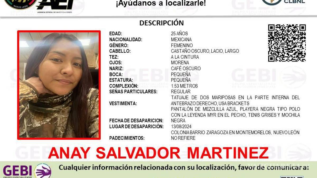 La chica se llama Anay Salvador Martínez y está desaparecida desde el pasado 13 de agosto del año en curso.