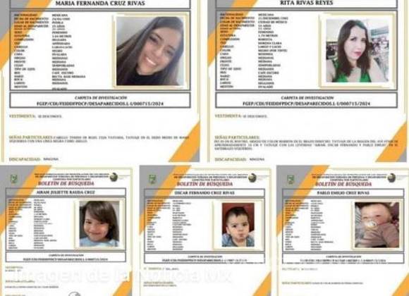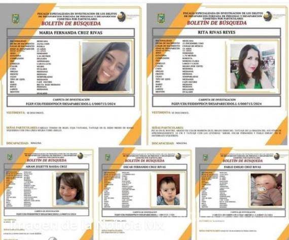 La familia desaparecida está integrada por dos mujeres: Rita Rivas Reyes, de 53 años, su hija, María Fernanda Cruz Rivas, de 25, y los hijos de esta: Airam Juliette Rauda Cruz, de 6 años, y los gemelos Óscar Fernando y Pablo Emilio Cruz Rivas, de un año.