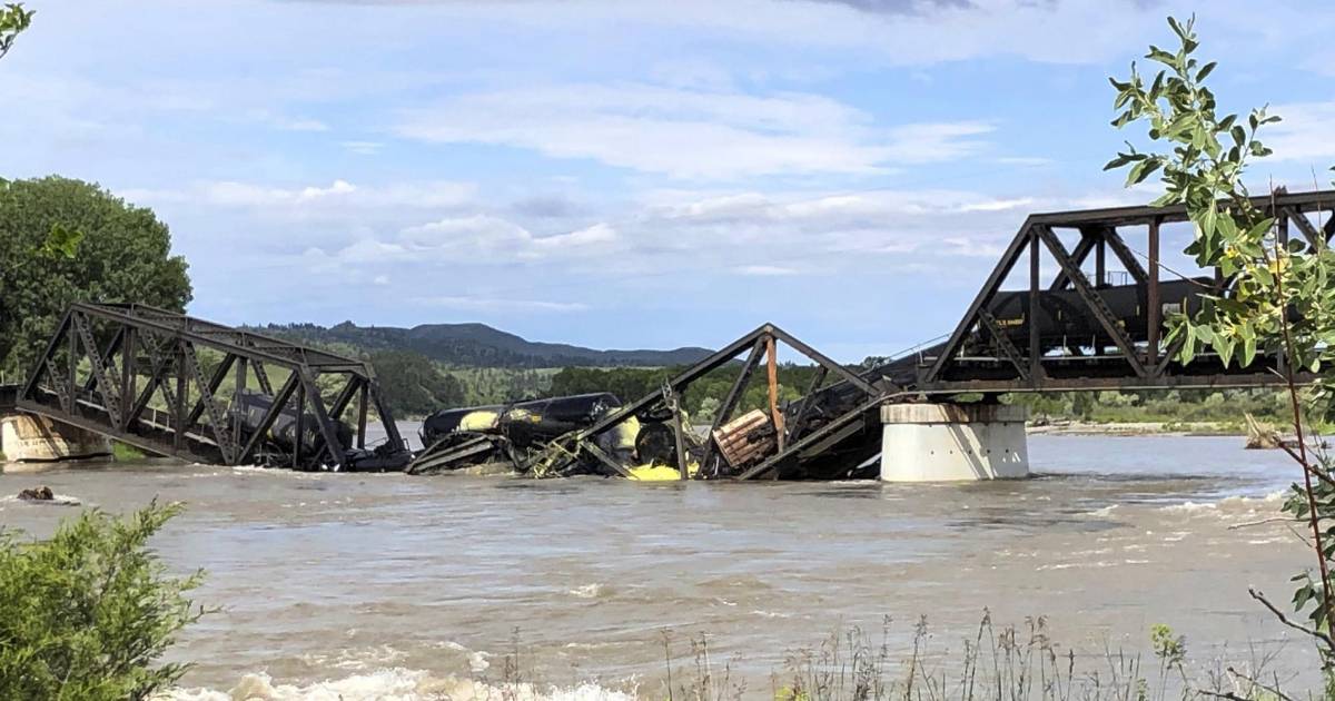 Un puente sobre el río Yellowstone en Montana se derrumbó el sábado por la mañana y varios vagones de un tren de carga con sustancias peligrosas cayeron al agua, informaron las autoridades.