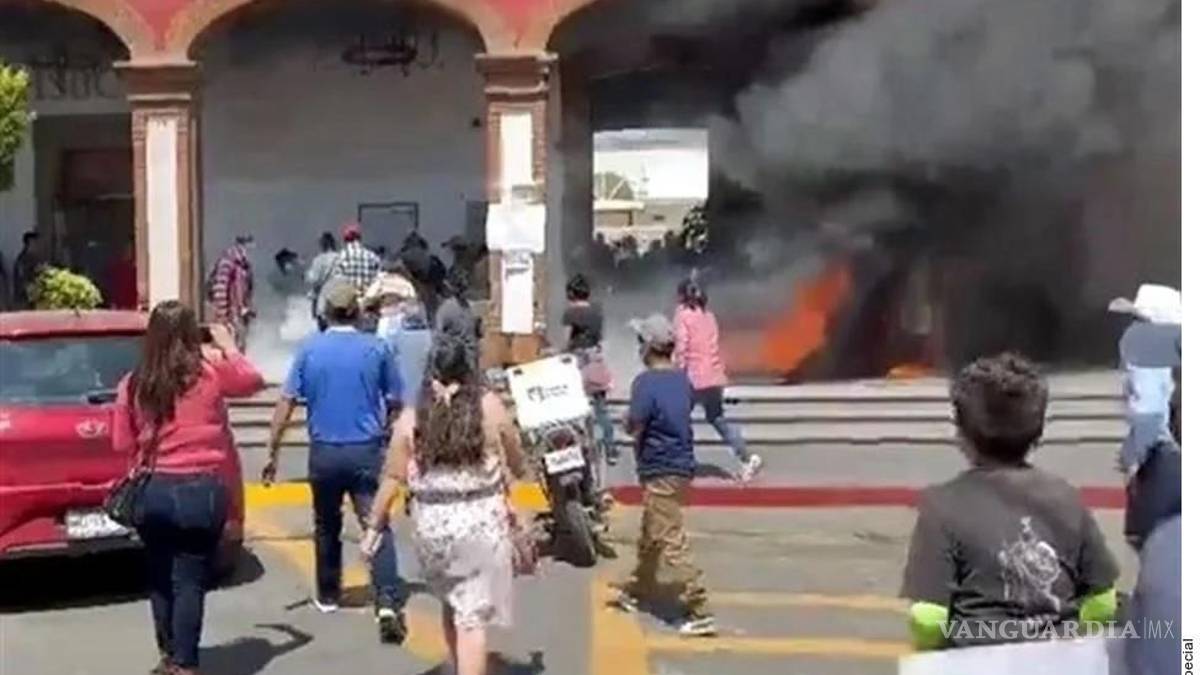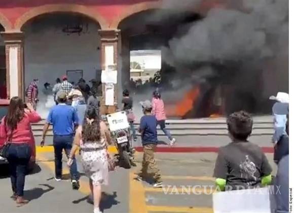 Al ver que no eran atendidos, con enojo encendieron una hoguera con llantas en las puertas del palacio municipal, donde un policía trató de apagar la fogata con un extintor y fue agredido por los manifestantes quienes lo retiraron a golpes.