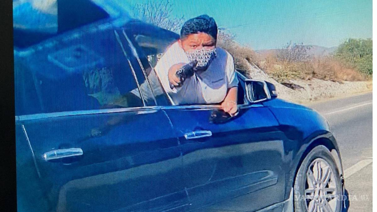 En un video obtenido por Reforma se observa que la mujer viaja de copiloto en una camioneta de lujo color azul y se asoma con un cubrebocas por la ventanilla para amagar a los custodios de un camionero con un arma de fuego, a fin de que detenga la unidad.