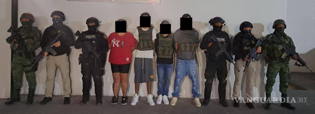 Los detenidos son cuatro hombres y una mujer que fueron capturados el miércoles al exterior de un domicilio, ubicado en la calle Diego Rivera, en la colonia Puerta Anáhuac, en Escobedo.
