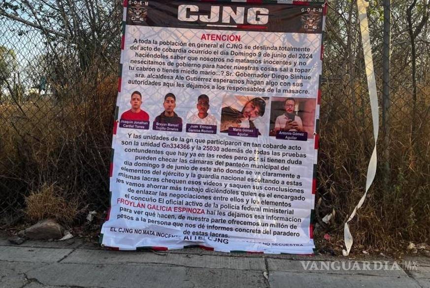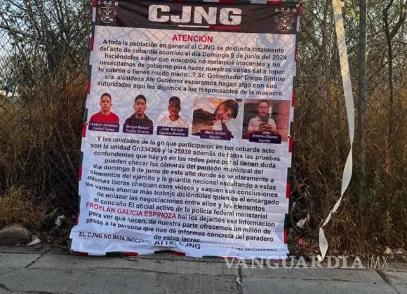 En las mantas presuntamente firmadas por el CJNG, el cártel se deslinda de esos crímenes, se muestran rostros y nombres de los presuntos autores y se ofrece una recompensa por ellos.