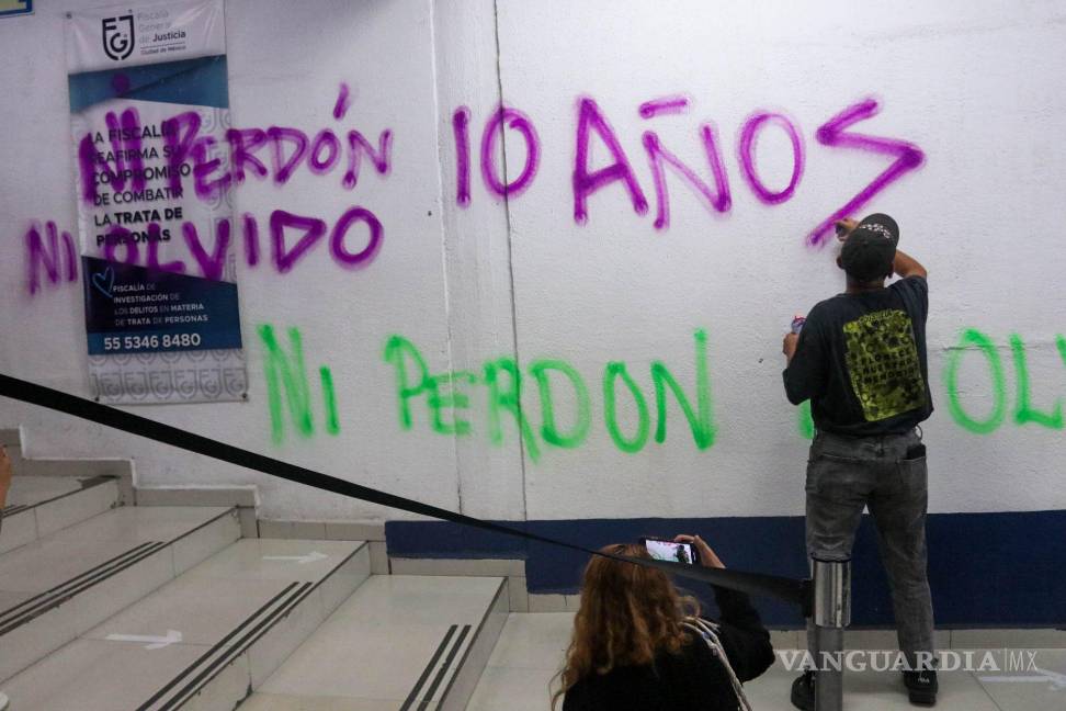 Espinosa Becerril pinta con determinación la palabra “justicia” en las paredes de la fiscalía capitalina y reconoce que el gobierno actual, encabezado por la presidenta de México, Claudia Sheinbaum, es “cómplice” del silencio.