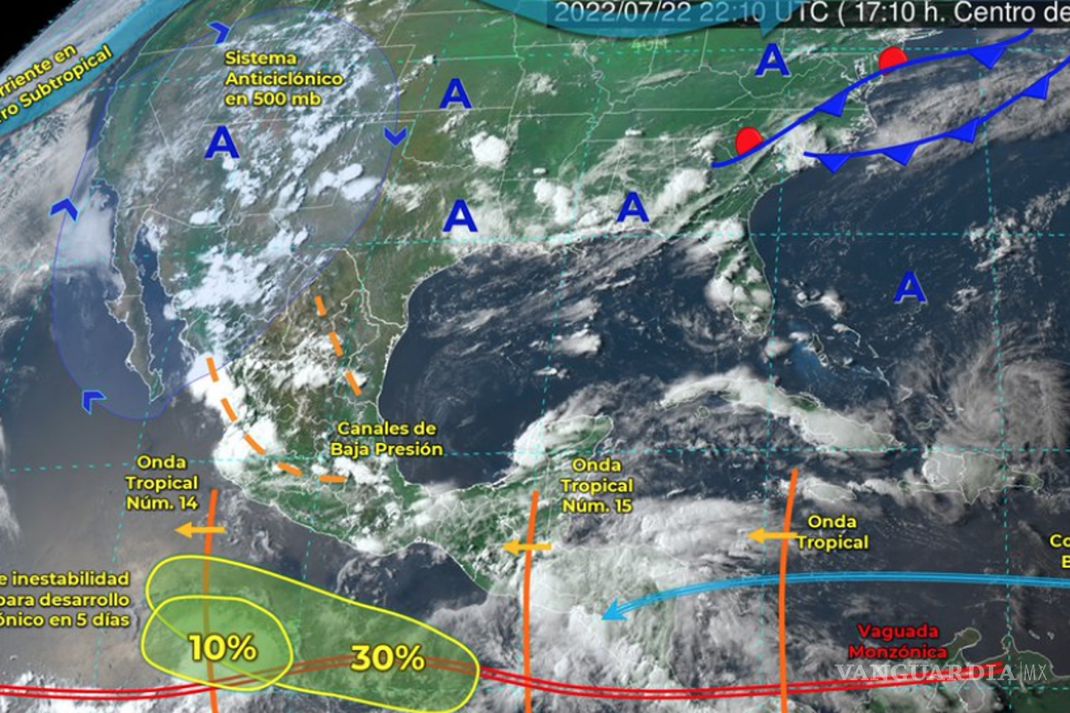 El día de hoy, seguirá el clima caluroso en el norte de México por una circulación anticiclónica, incluso se esperan temperaturas de 45°C en al menos tres estados, prevalecerán las lluvias en 31 estados.