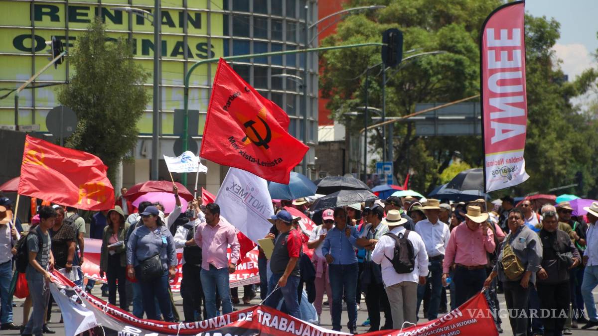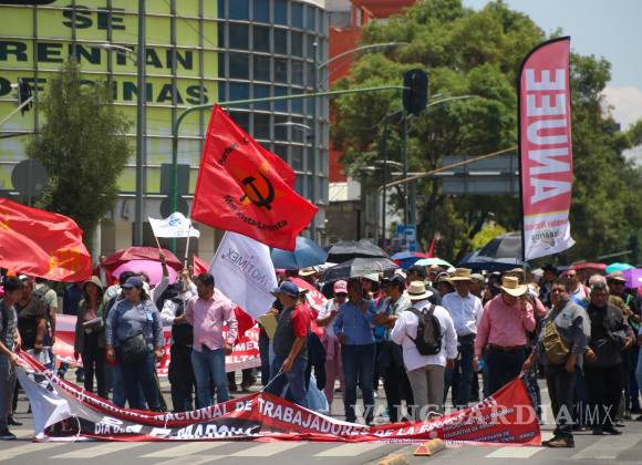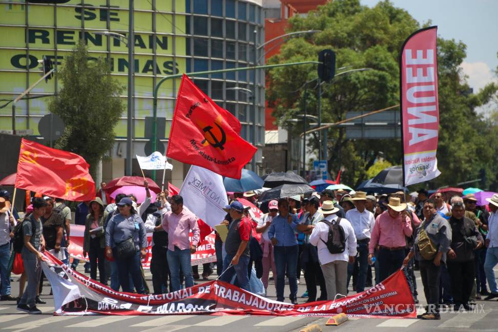 Previo a la marcha que realizaron del Metro San Cosme al Zócalo capitalino, contingentes de la disidencia magisterial expresaron su rechazo a la política salarial del gobierno federal, al señalar que mientras el salario mínimo ha crecido en más del 150% en este sexenio, los maestros reciben aumentos menores a la inflación.