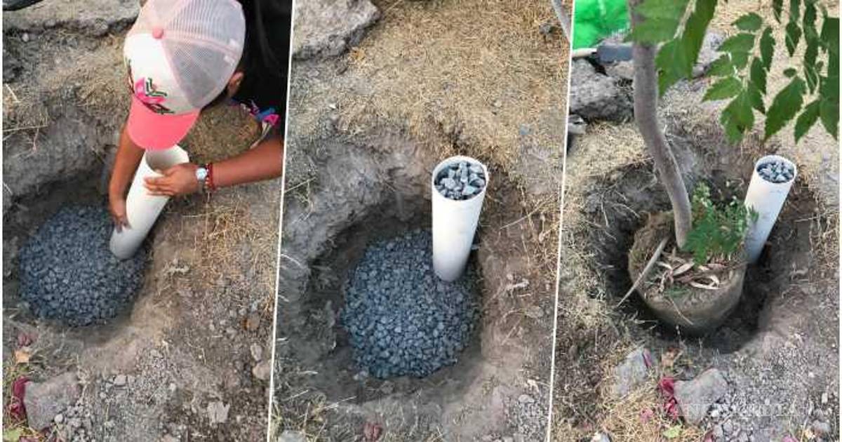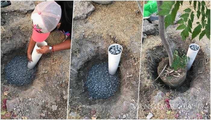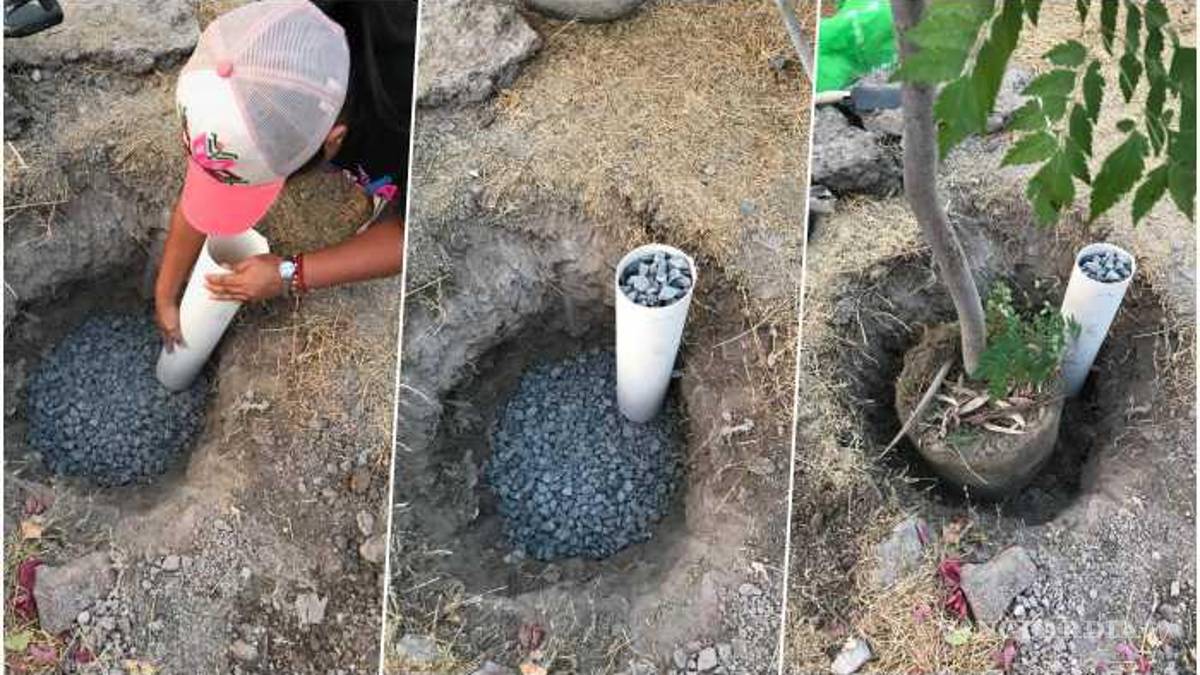 El legislador federal coahuilense explica que, al plantar un árbol, a un costado se debe colocar un tubo de PVC al que se le deben hacer diferentes hoyos, para después colocarlo verticalmente en el pozo y llenarlo con grava. Finalmente se deben cubrir los alrededores con tierra.