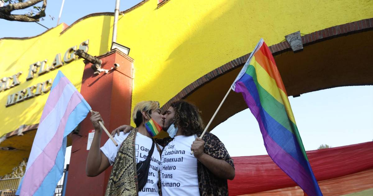 Se realizó una protesta con un besotón por parte de decenas de personas en las entradas del parque de atracciones Six Flags de Ciudad de México en contra de la discriminación a personas de la comunidad LGBT.