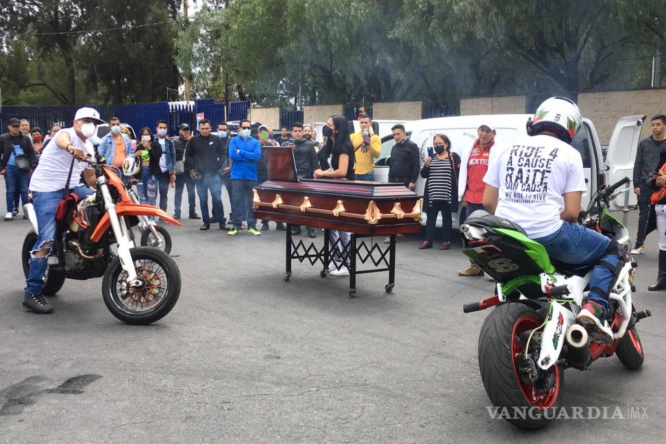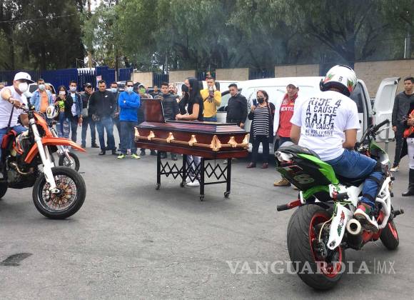 Con un espectáculo de motocicletas, familiares y amigos despidieron a Donovan, de 17 años de edad, quien estuvo involucrado en el ataque contra un empresario en el aeropuerto de Ciudad de México.