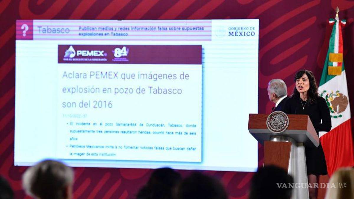 CIUDAD DE MÉXICO - La encargada de la acción Quién es quién en las mentiras de la semana, Ana Elizabeth García Vilchis exhibió como noticia falsa la información difundida por medios de comunicación y sus aliados en redes y la oposición al presidente Andrés Manuel López Obrador sobre el caso de la explosión de un pozo petrolero en el estado de Tabasco.