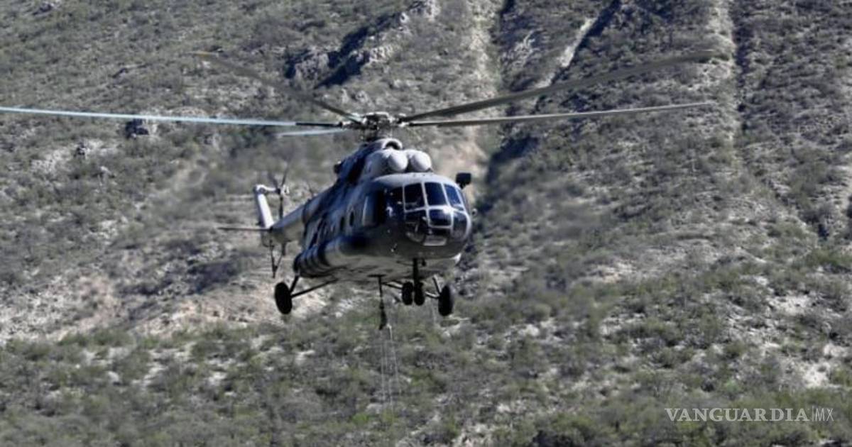 Con helicóptero de la GN, refuerzan ataque aéreo contra incendio forestal en Santa Catarina, Nuevo León