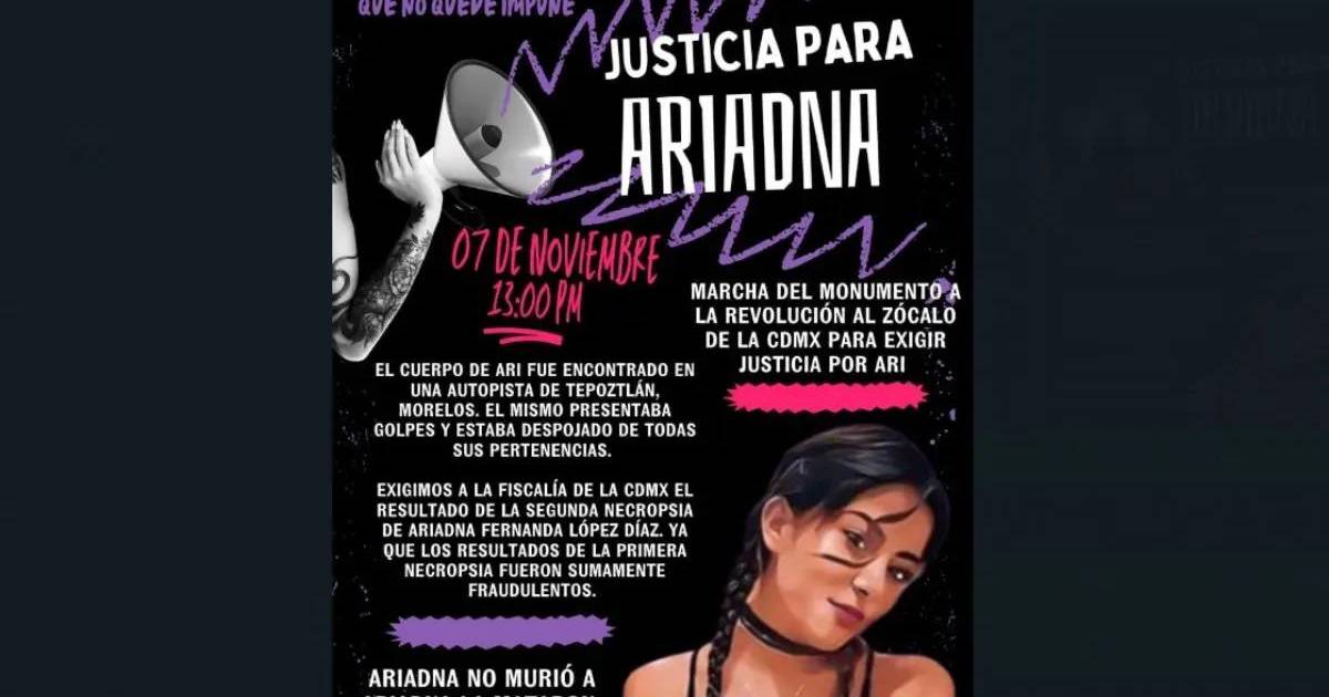 En redes sociales se ha difundido la convocatoria a una marcha en exigencia de justicia por el feminicidio de la joven Ariadna Fernanda López Díaz, cuyo cuerpo fue hallado sin vida en la carretera de Tepoztlán.