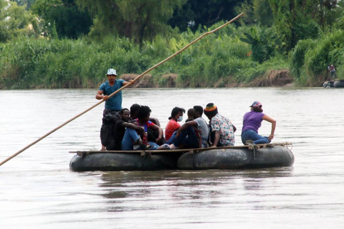 CIUDAD HIDALGO, CHIS.- Apoyados por traficantes de personas, unos 800 migrantes haitianos ingresan diariamente a México a bordo de improvisadas embarcaciones, las cuales están construidas con neumáticos de tractor y tablas. Navegan por el río Suchiate —en la frontera con Guatemala— ante la presunta complicidad de elementos del Instituto Nacional de Migración (INM) y la Guardia Nacional (GN).