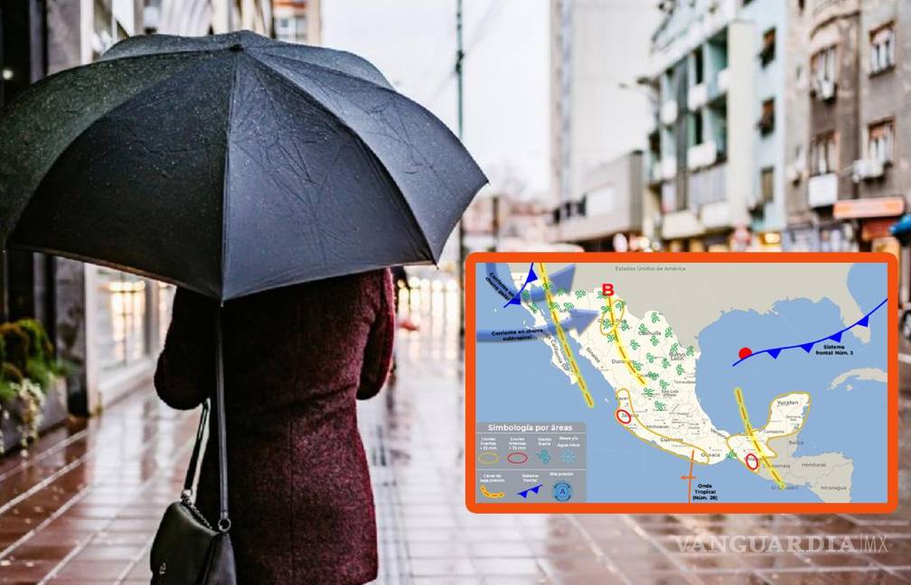 Por su parte, la onda tropical 28 se desplazará lentamente sobre el sureste y sur del territorio nacional, reforzando el potencial de lluvias fuertes a puntuales intensas en las mencionadas regiones.