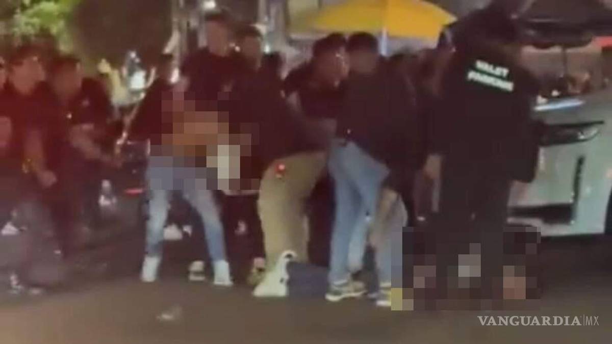 De acuerdo con las imágenes y la denuncia en redes, los agresores presuntamente son elementos de seguridad y de valet parking del Bar Bunny.