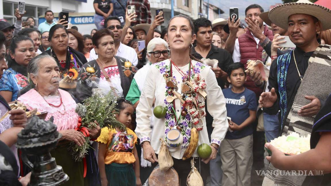 En el mitin en la Plaza Cívica Morelos, donde fue recibida con una limpia con copal y ofrendas de fruta y pan, Sheinbaum aseguró que la oposición no entiende que México ya cambió ante las críticas de que en encuestas aparece con 35 puntos arriba de Xóchitl Gálvez, precandidata del Frente Amplio por México.