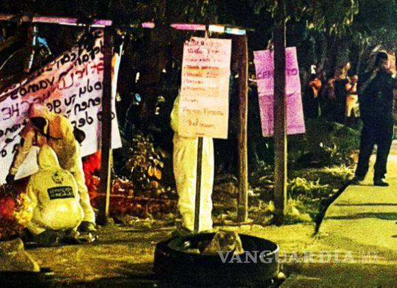Además de los restos, los presuntos sicarios colgaron en el lugar una manta con amenazas dirigidas a un grupo delictivo