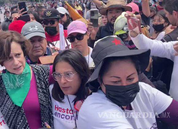 Según se observa en un video captado frente a la Catedral Metropolitana, un grupo de jóvenes muestra su rechazo hacia la académica y escritora, e incluso uno de ellos la cuestiona al decirle de forma irónica: “’¿Te vienes a burlar de nuestra lucha? ¿Vienes con una mantita?”.